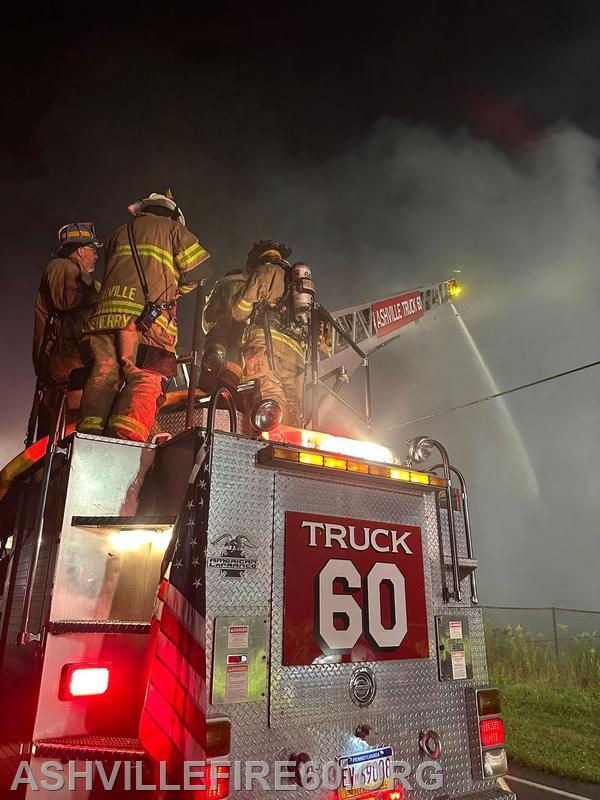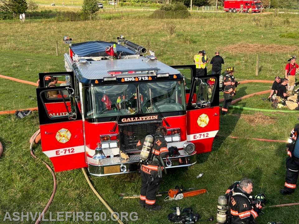 A first alarm was dispatched 17:37 hrs for a structure fire on the 2300 block of Gallitzin/Coupon Rd, Gallitzin Twp District 71. Rescue, Truck and Engine 60 all responded on the alarm with a total of 18 firefighters The building was originally part of the former Forest Zoo complex and had been converted to a cattle barn by the current owners. On scene firefighters encountered a well involved structure that sat several hundred feet from the roadway, that had just been stocked with hay bales. Truck 60 setup for master stream operations along with Engine 71, as Rescue and Engine 60 combined on a 1,800’ water relay from a neighboring dam, supplemented by a tanker shuttle to ensure steady water supply throughout the 5 hour incident. All the animal’s are safe. Thank you to Glendale Eng 28 for covering district 60 for nearly 6 hours, answering 1 emergency call during that time. Also Thanks to Lou Who’s Pizza of Patton for sending food to the station! Doin’ What We Do “60 Pride”